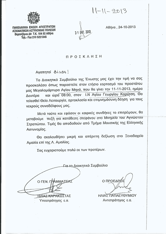 Σύλλογος Αποστράτων Αστυνομικών Νοτιοανατολικής Αττικής Ο Αγιος Αρτέμιος